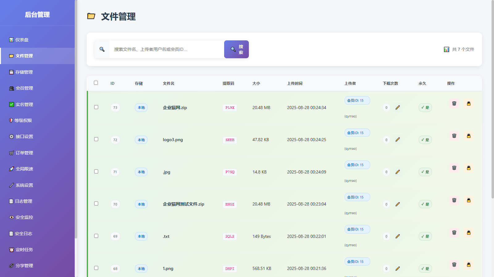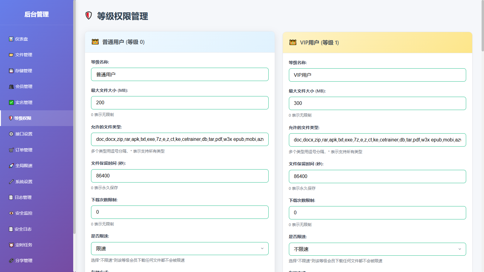 9月更新 臨時文件快傳系統源碼 全開源附教程更新日誌:新增:獨立分享頁面新增返回首頁按鈕目錄分享頁面顯示統計信息會員等級中心顯示是否默認永久存儲後臺會員等級權限支持設置每個等級的用戶上傳的文件,是否默認永久存儲前臺會員中心支持取消永久後,重新設爲永久,但需判斷是否支持設爲永久修復/更新:後臺等級權限設置中 價格設置,改爲默認摺疊,更節省空間,簡潔修復WEBDAV對接123雲盤上傳失敗的問題修復後臺編輯等級權限時,前臺會員等級的公告內容會被清空的問題。
