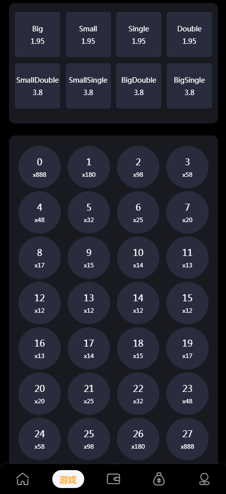 區塊鏈大小競猜遊戲,可修改賠率,可控制開獎結果
