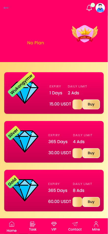 投資理財新模式,通過觀看廣告獲取佣金收益,觀看廣告次數是根據VIP等級來的,等級越高價格越貴,看廣告的次數也就越多
