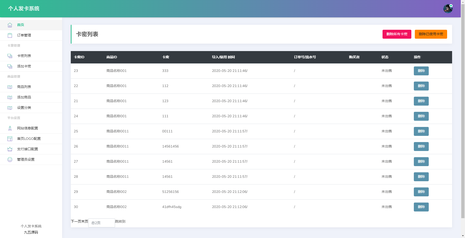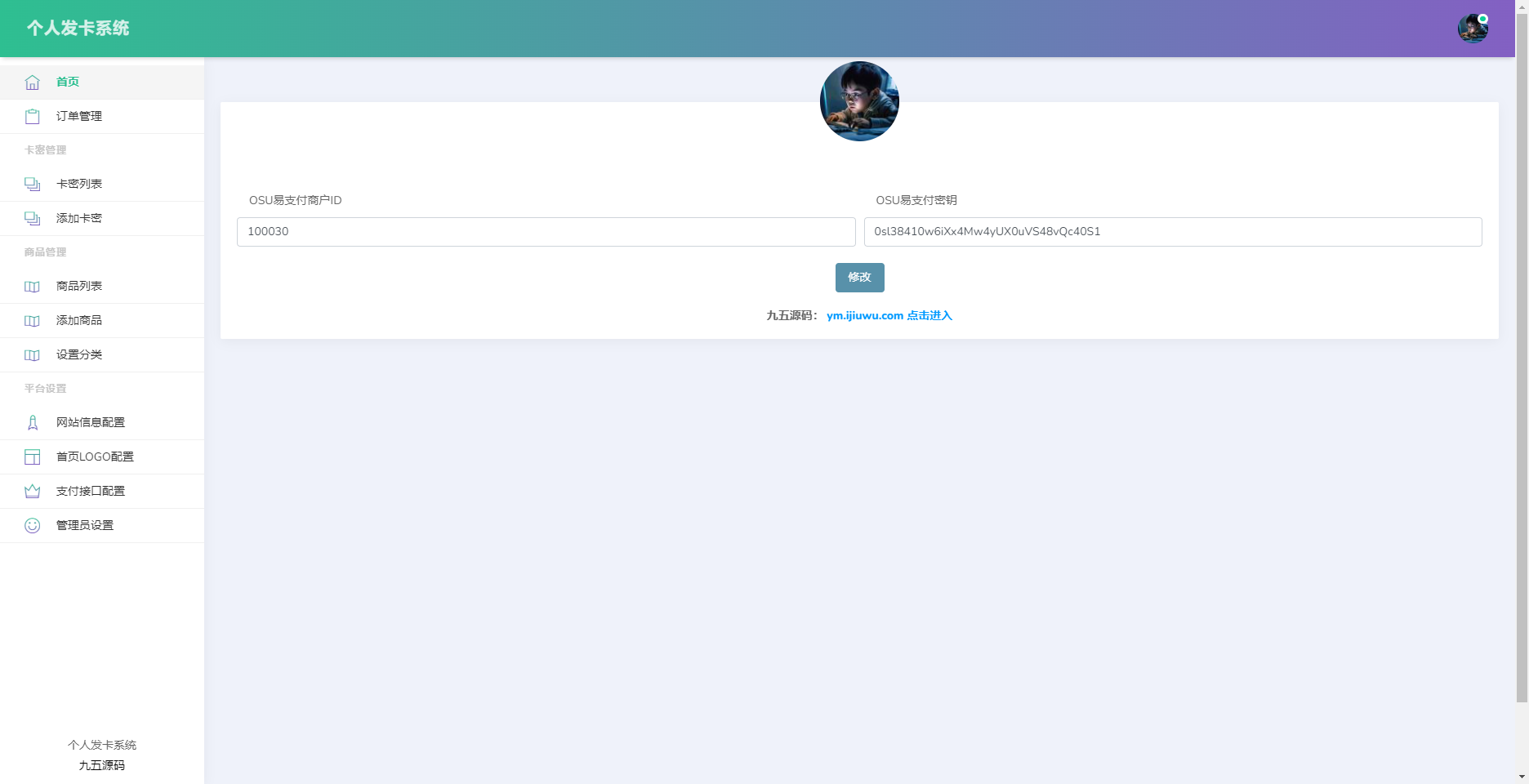 耘藝源碼網 » 開源簡約個人髮卡系統源碼