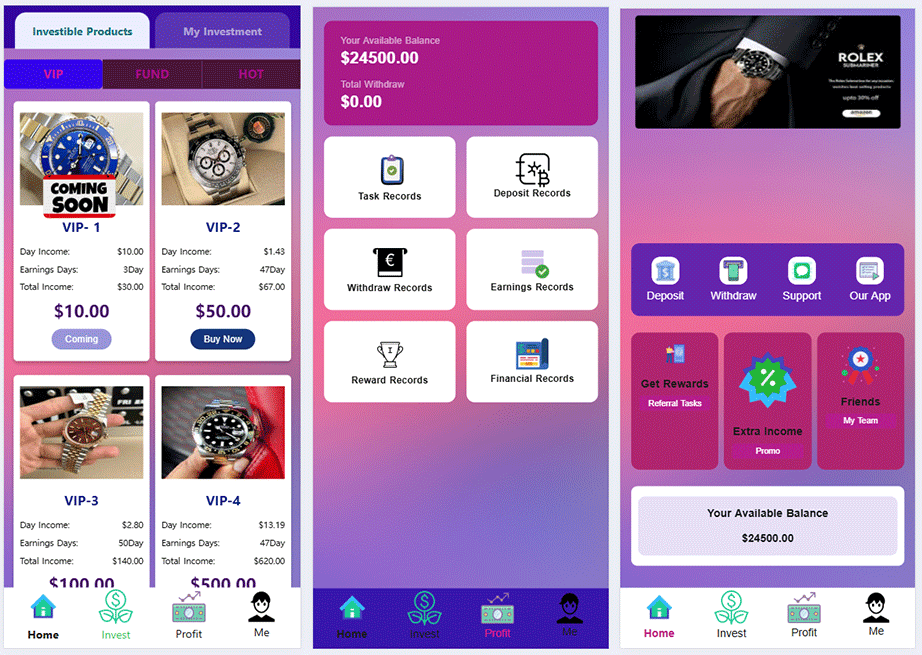 PHP海外投資理財系統源碼/英文理財程序/奢侈品手錶商城產品理財