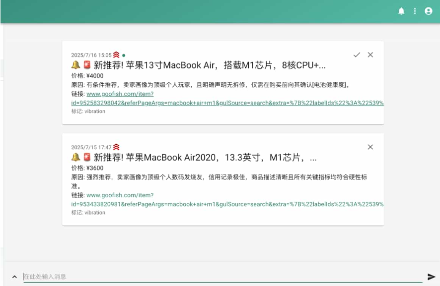即時通知: 支持通過 ntfy.sh、企業微信機器人和 Bark,將符合AI推薦的商品立即推送到你的手機或桌面。