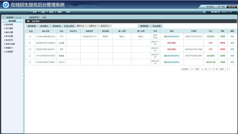 後臺可以一鍵導出報名表,可以在線支付,可以在線打印報名表,打印准考證,是一套簡單好用功能強大的在線報名系統!