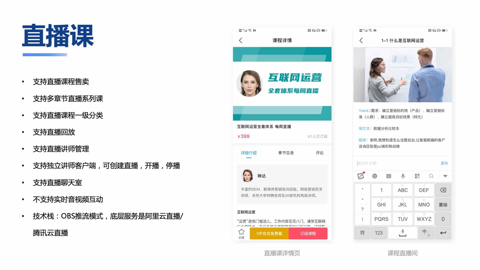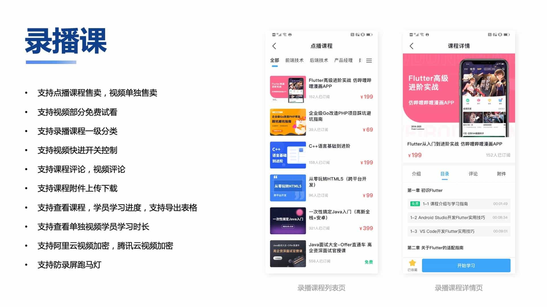 支持錄播,直播,圖文,考試練習等多種教培形式;