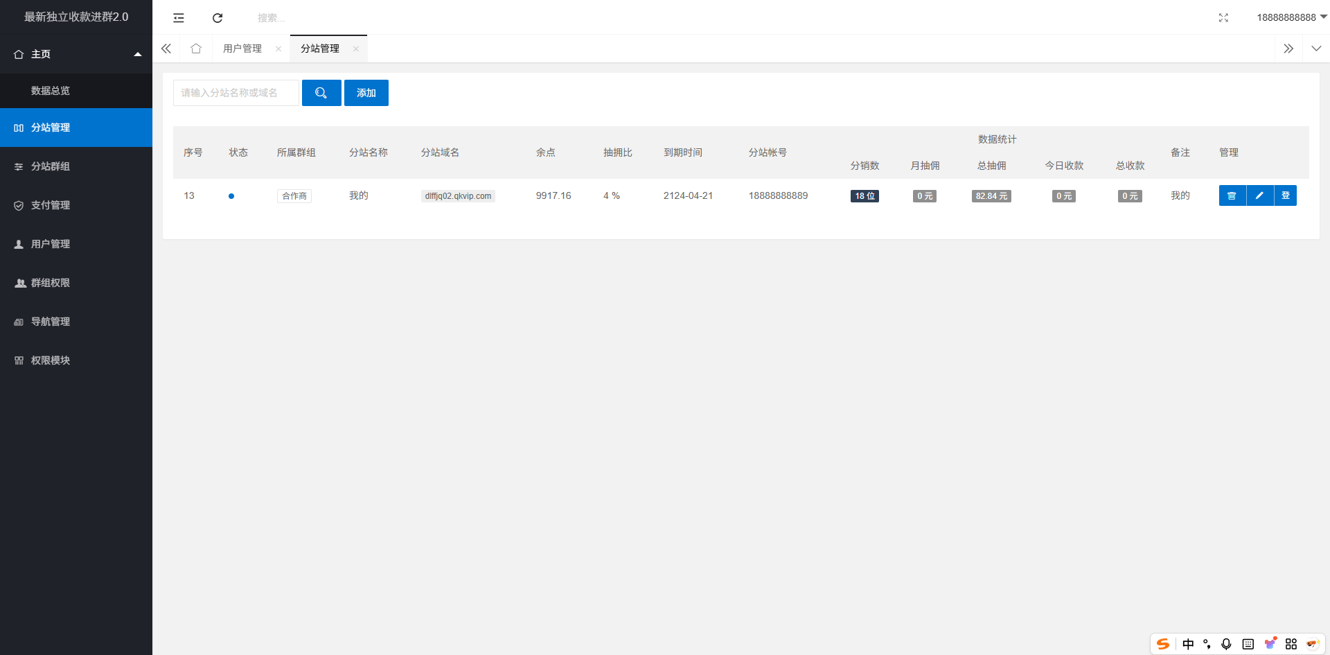 分站分銷裂變系統,支持多級分站開通,自定義分站佣金比例,分站獨立管理後臺,實時查看訂單與收益數據
